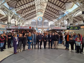 L'acte de solidaritat, sota la cúpula del Mercat Central, ha reunit a representants també de Confemercats i Proava, així com de l'Ajuntament de València, amb el regidor de Comerç i Mercats, Santiago Ballester al capdavant.