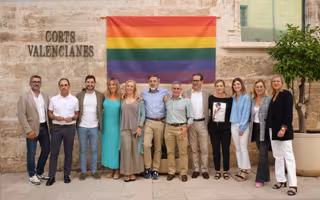Diputats del GPP, acompanyats entre altres de la secretària autonòmica d'Igualtat i Diversitat, Asunción Quinzá; i el director general de Diversitat, Stephane Soriano, han assistit en la façana principal de Les Corts a la col·locació de la bandera arc de Sant Martí en suport al col·lectiu LGTBI amb motiu del Dia de l'Orgull.
