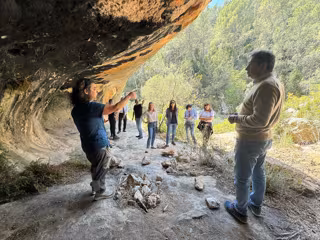 Barrera ha visitat al jaciment de las Cuevas de l'Aranya, protegit per la Unesco com a Patrimoni de la Humanitat, és una de les manifestacions més "notables" de l'art rupestre en l'arc Mediterrani, que és famosa per la seua representació de la recol·lectora de la mel.