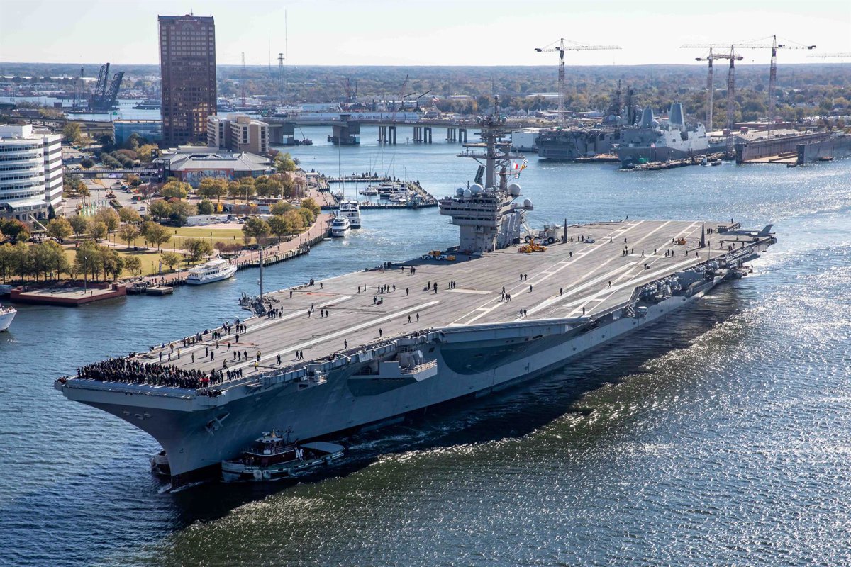 El portaavions se suma a l''Abraham Lincoln' i al vaixell almirall de la Marina nord-americana, el 'Gerald R. Ford' per a consolidar el bloqueig ordenat pel president d'Estats Units, Donald Trump, al perímetre de l'estratègic estret d'Ormuz, ara mateix baix control d'Iran.