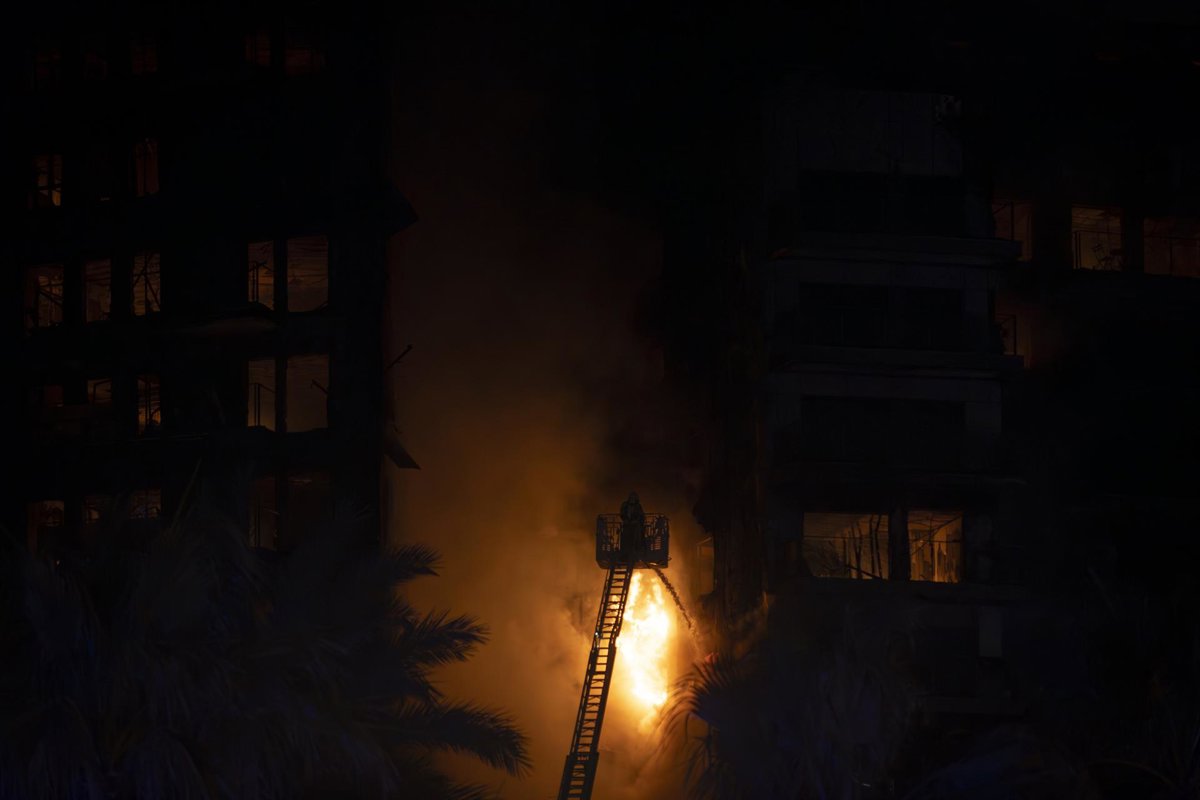 Efectius de bombers han roms tota la nit refrescant els edificis incendiats a la zona de Campanar de Valncia, que a primera hora d'aquest matí ja no presentaven flama.