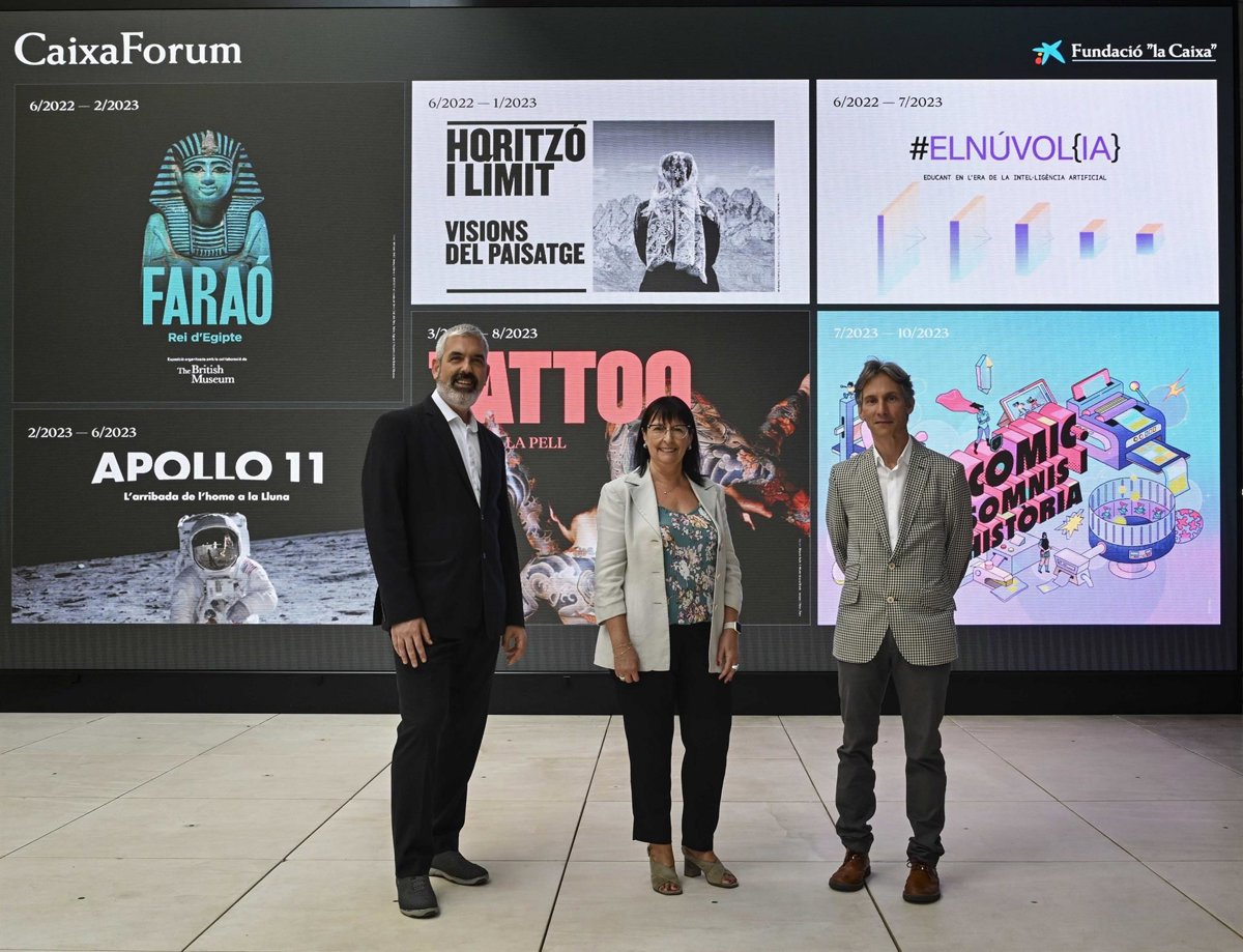 Caixaforum Valncia oferir en la temporada 2022/2023 un total de sis exposicions, les tres que ja acull després de la seua inauguració el passat 21 de juny i de tres noves. Així, a 'Faraó. Rei d'Egipte', 'Horitzó i límit. Visions del paisatge' i '#LaNUBE(IA) Educant en l'era de la intelligncia artificial' se sumaran el prxim any 'Apollo 11. L'arribada de l'home a la Lluna', 'Tattoo. Art sota la pell' i 'Cmic. Somnis i histria'.