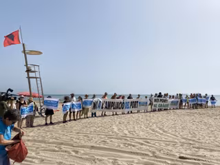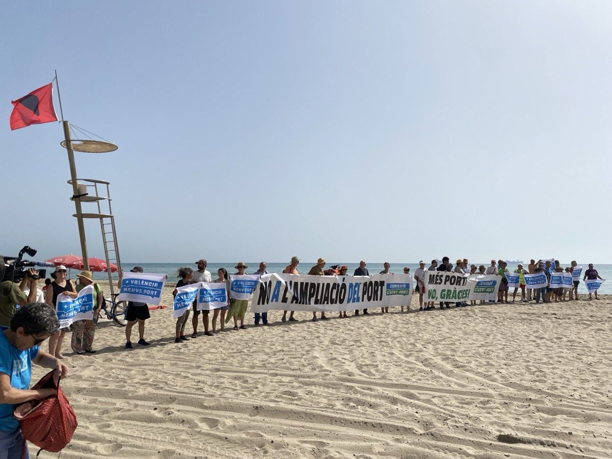 Desenes de persones han protestat este dijous a la platja del Saler, convocades per la Comissió Ciutat-Port, per a exigir la paralització de l'ampliació nord del Port amb l'objectiu i "evitar així que es produsquen més abocaments" com el qual s'ha registrat el dilluns en els arenals junt amb el Parc Natural de l'Albufera.