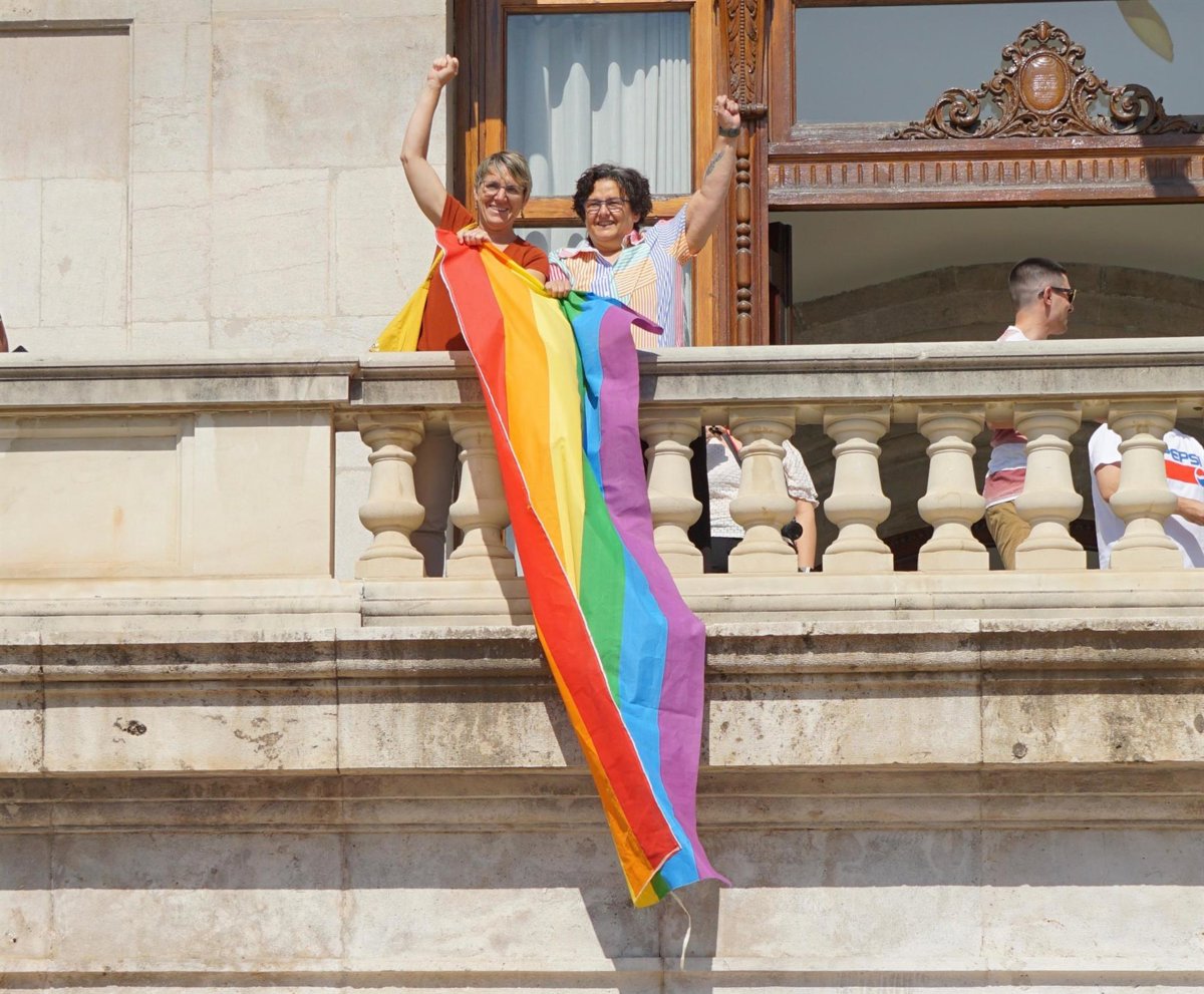 La portaveu de Compromís a l'Ajuntament de València, Papi Robles, i l'edil d'esta formació, Lluïsa Notario, han desplegat hui divendres la bandera LGTBIQ+ des de la balconada del consistori per a donar "visibilitat" a este col·lectiu, coincidint amb la celebració aquest dissabte del Dia de l'Orgull, "enfront del veto de --l'alcaldessa, María José-- Catalá (PP) i Vox".