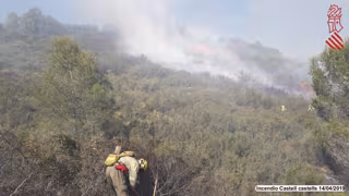 Un mitjà aeri, dos unitats de bombers forestals de la Generalitat, dos autobombes, tres vehicles de bombers de la Diputació d'Alacant i un agent mediambiental treballen aquest dilluns en les tasques d'extinció de l'incendi.