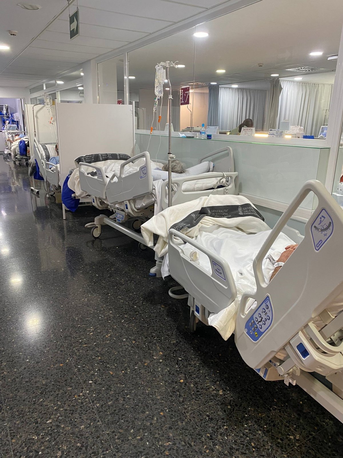 CSIF continua relatant que aesta circumstància deriva en fets com que "dos pacients compartisquen monitor, amb el consegüent risc d'error clínic; falta de les necessàries preses d'oxigen, impossibilitat d'accés ràpid al pacient si ho requerix per l'acumulació de llits i escassetat d'espai físic; llits sense accés a endolls, la qual cosa impedix la seua correcta regulació; o vulneració de la intimitat i privadesa dels pacients en capellans en boxes duplicats o en passadissos".