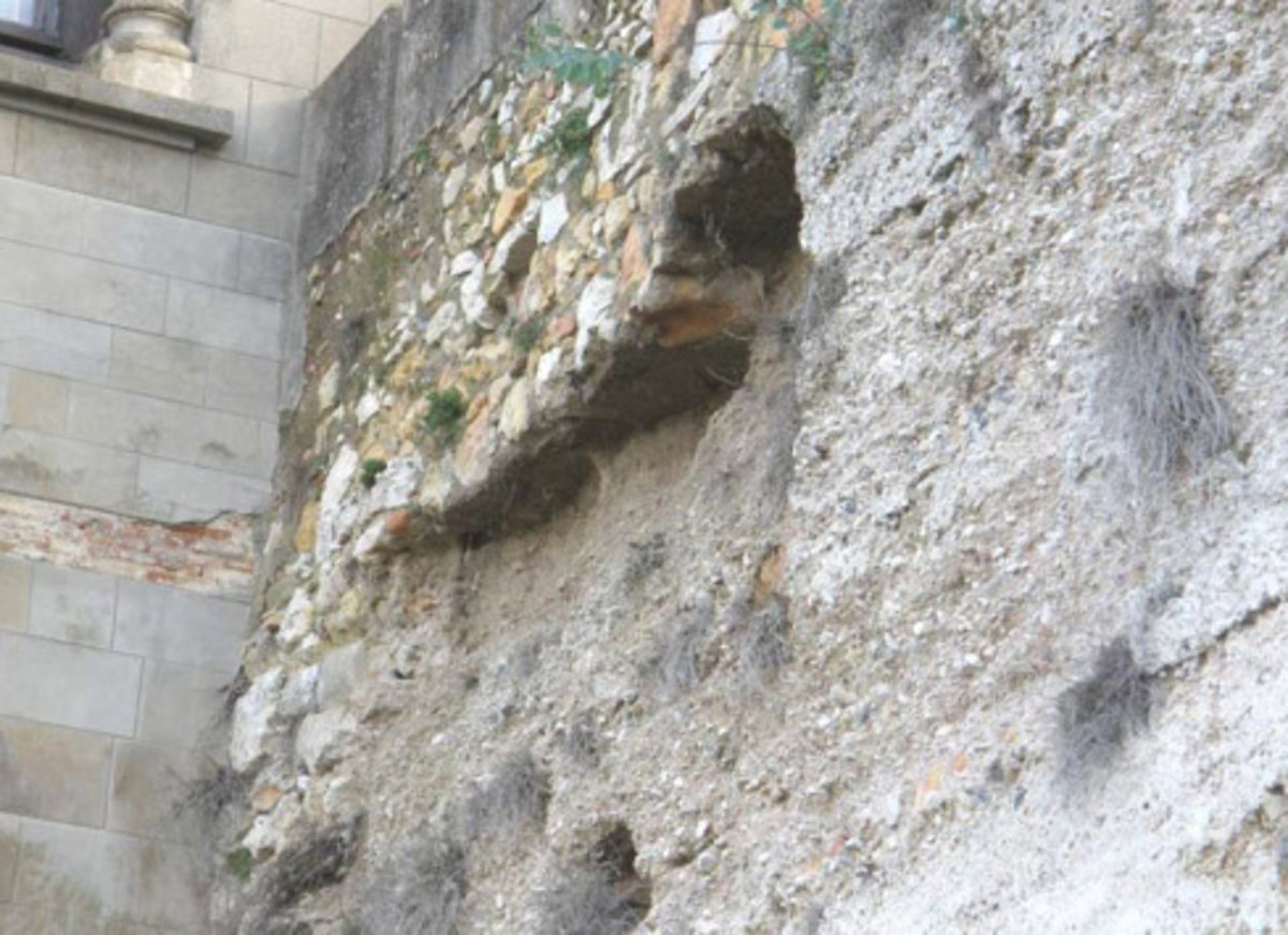 Aix ha provocat tal prdua de secció del mur que existeix risc de collapse del front de muralla, la qual cosa podria afectar al cos superior almenado i a l'espai del pati d'armes.