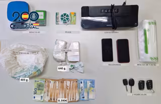 S'han intervingut 8.390 euros en efectiu, 640'8 grams de cocaïna, 403,6 grams de substància de tall, així com diversos útils per a la seua manipulació, segons ha informat la Prefectura en un comunicat.