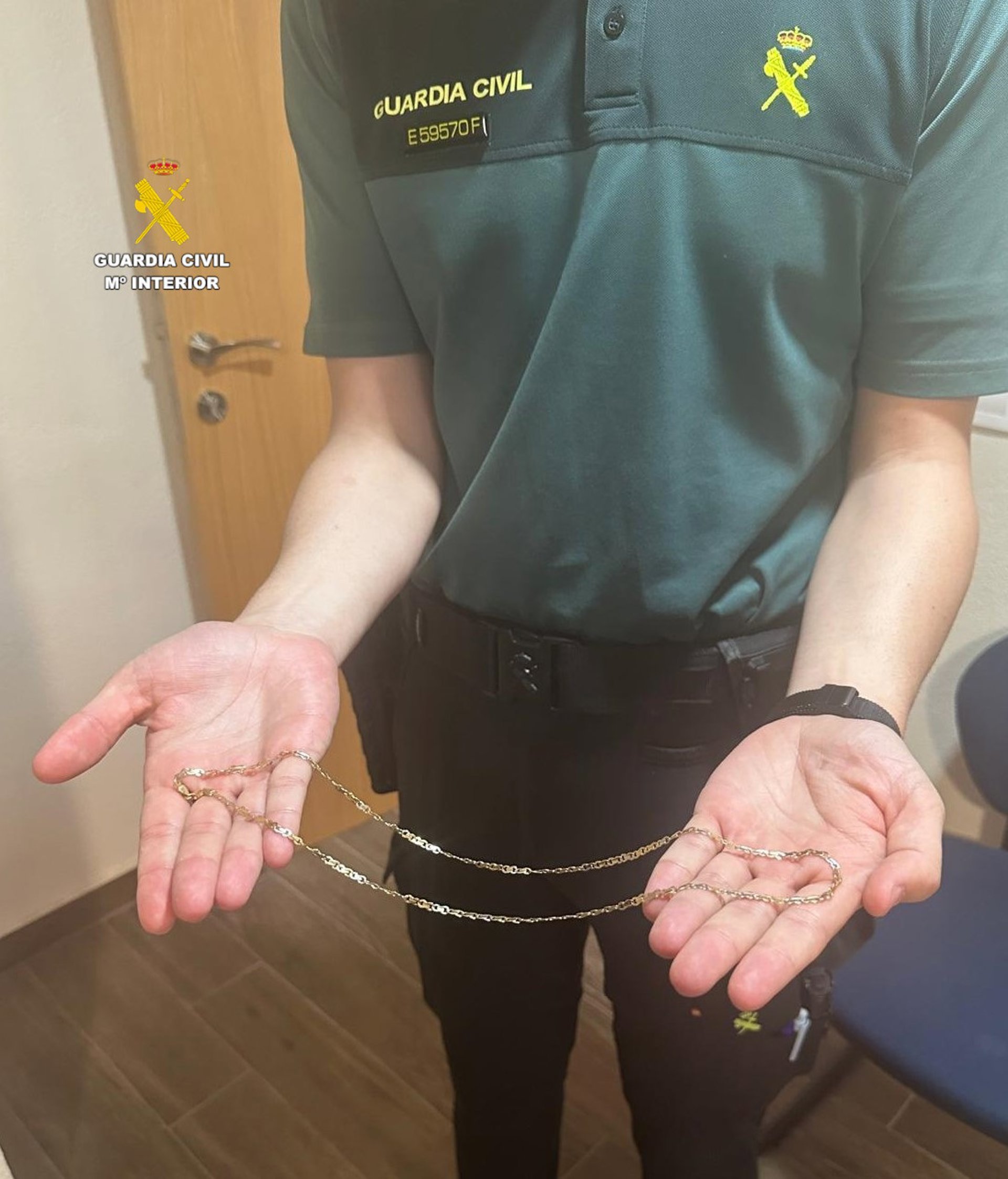 Traslladats al lloc, els agents van comprovar que diverses persones havien robat una cadena d'or a un home, després d'emprar la força per a immobilitzar-ho i agredir-ho físicament. Un dels presumptes autors es trobava en el lloc i va ser detingut in situ mentre que els altres van fugir en saber que la Guàrdia Civil es dirigia al lloc.