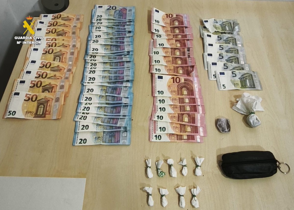Es va procedir a la identificació d'este home i, davant de les incoherències en la seua explicació i estat de nerviosisme, els agents van inspeccionar la motxilla que portava, en l'interior de la qual van trobar 9 bolsitas de cocaïna, una bolsita amb marihuana, un tros d'haixix, així com 1.375 euros en efectiu.