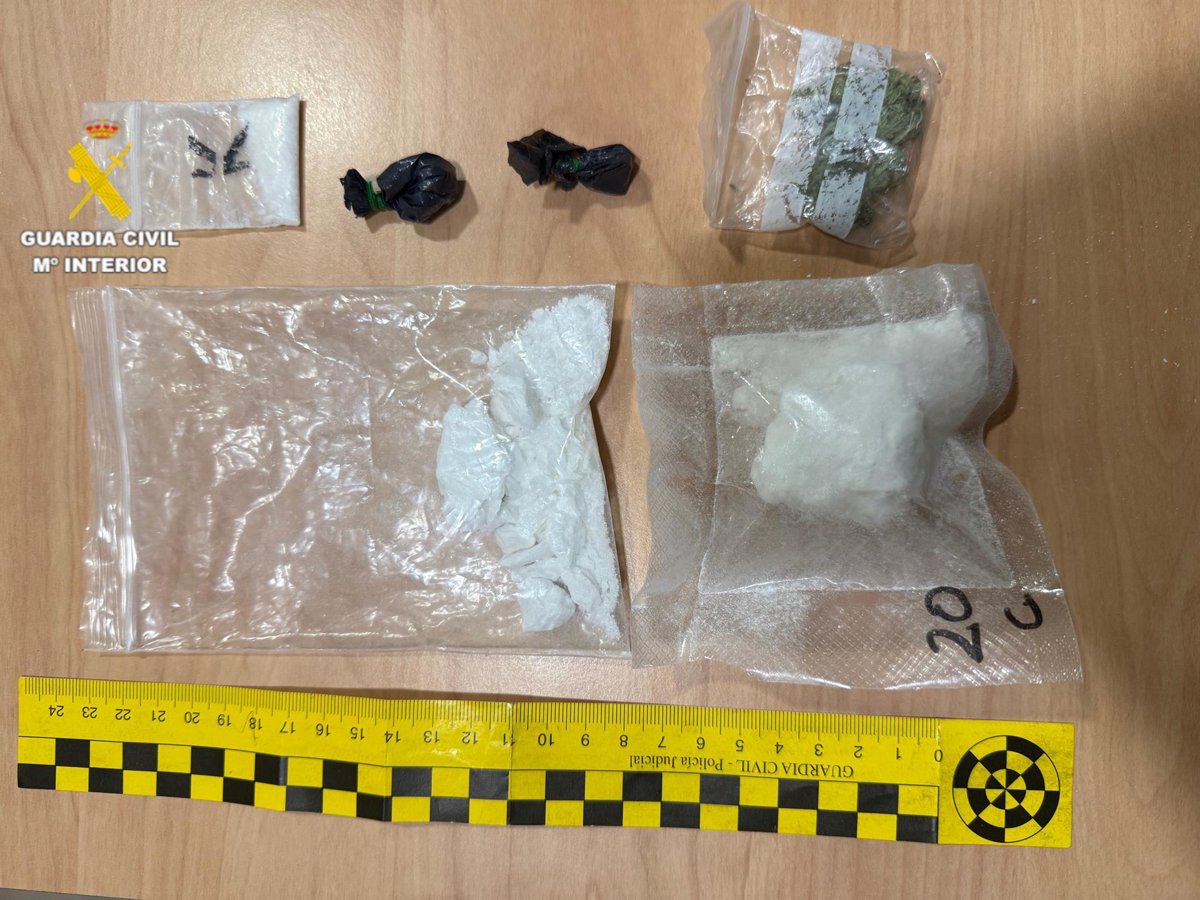 Després de realitzar les comprovacions oportunes, es va procedir a un registre superficial de seguretat, en el qual es van localitzar diverses substancies estupefaents ocultes entre les seues pertinences. En total, al detingut se li van intervenir 34,82 grams de cocaïna, 0,91 grams de ketamina i 1,8 grams de marihuana, així com 1.870 euros en efectiu, la qual cosa va reforçar els indicis d'un possible delicte de tràfic de drogues.