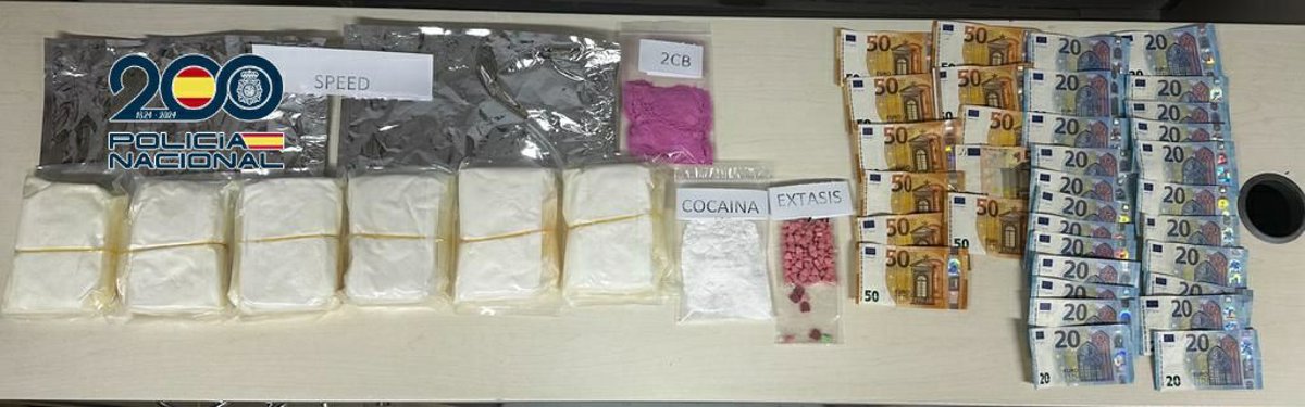 En el registre practicat en l'habitatge de l'arrestat, els efectius policials van intervenir 3.100 grams de speed, 46 grams de cocaïna, 49 grams de 2CB, 90 pastilles d'èxtasis, prop de mil euros en bitllets fraccionats i una envasadora al buit.