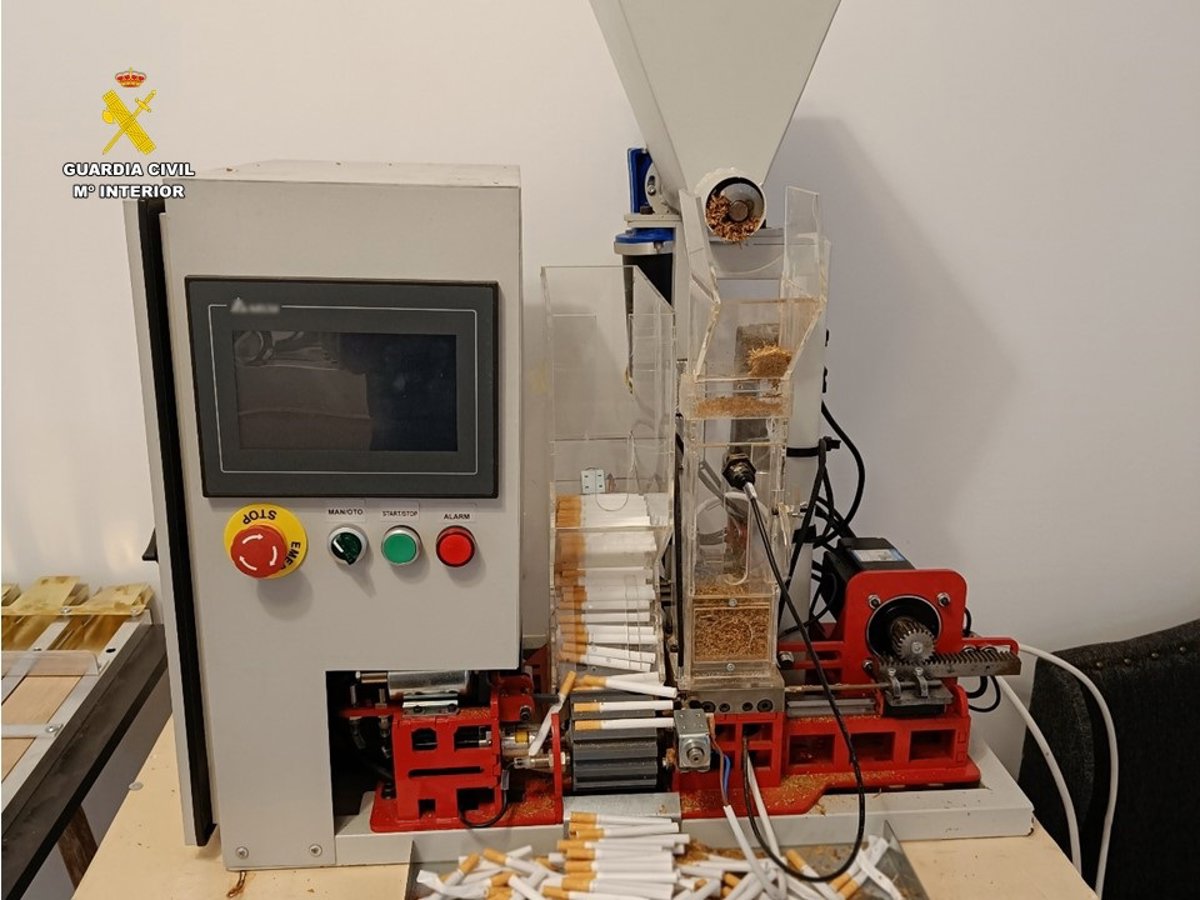 A més, els agents es van confiscar d'una mquina per a precintar paquets de tabac i una altra valorada en més de 12.000 euros, dissenyada per a embolicar, entubar i omplir amb la picada a una velocitat de fins el 12.000 cigarrets per hora.