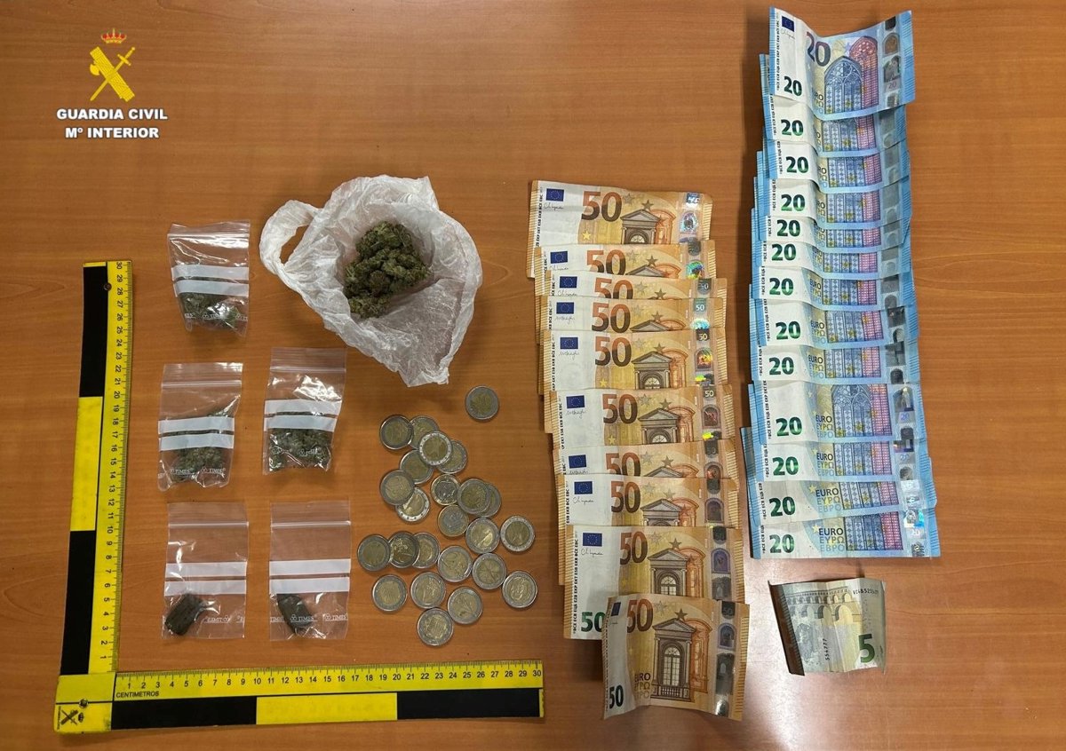 Els guàrdies civils van donar l'alt en la matinada del dia 17 de gener a un vehicle ocupat per dos homes que van ser identificats, i van observar durant el procés que de l'interior de l'automòbil es desprenia una forta olor a marihuana, per la qual cosa van realitzar una comprovació del mateix i van localitzar diverses bosses que contenien un total de 5,8 grams d'haixix i 21 grams de marihuana, així com 811 euros en efectiu.