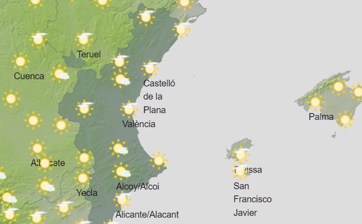 Les temperatures oscil·laran entre els 16 i 23 a Alacant cabdal; els 15 i 24 a Castelló de la Plana i els 14 i 24 a la ciutat de València.