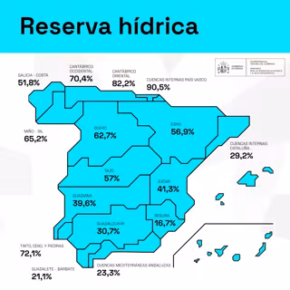 Amb menys del 50 per cent estan el Guadiana, que es troba al 39,6 per cent; el Guadalete-Barbate, que està al 21,1 per cent; el Guadalquivir, al 30,7 per cent; la Conca Mediterrània Andalusa, al 23,3 per cent; el Xúquer, al 41,3 per cent; les Conques internes de Catalunya, al 29,2 per cent; i el Segura, al 16,7 per cent.