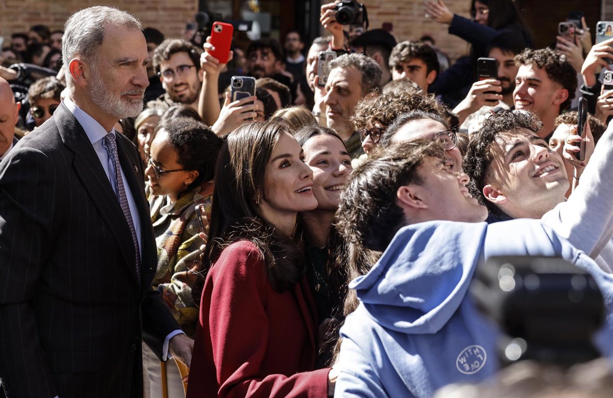 Els Reis s'han aproximat a les tanques on el públic esperava i han caminat junt amb elles saludant i donant-los la mà, mentre els assistents proferien víctors, aplaudien i es feien 'selfies' amb els monarques. Posteriorment, han saludat a les persones que observaven des de les balconades de la plaça, abans d'entrar a la seu de la CEV per a la reunió.