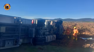 El camió ha quedat bolcat sobre la calçada i el conductor atrapat, per la qual cosa ha hagut de ser excarcerat pels bombers del Consorci, que han enviat a tres dotacions de Requena i del parc voluntari de Sinarques, i el sergent de Requena.