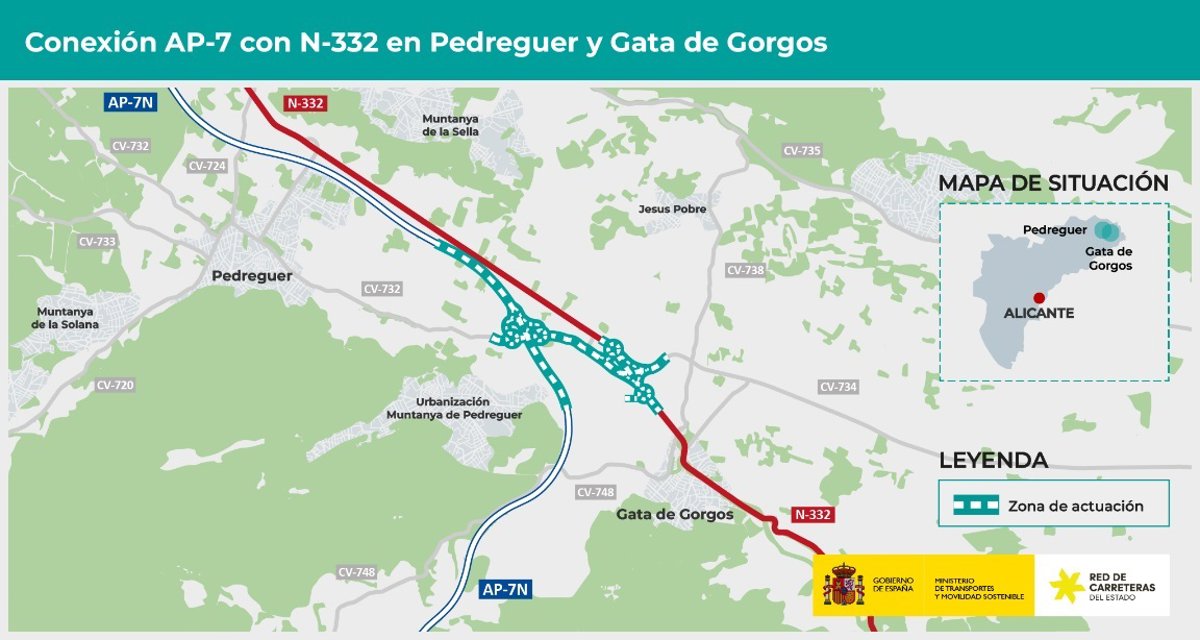 El Ministeri de Transports ha adjudicat per un milió d'euros (IVA inclòs) la redacció del projecte de traçat i construcció d'una nova connexió de l'AP-7 i N-332 a Pedreguer i Gata de Gorgos, a la província d'Alacant. El pressupost benvolgut de les actuacions a projectar ascendix a 30,1 milions d'euros (IVA inclòs).