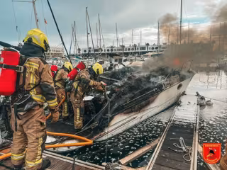 Efectius dels bombers del Servici de Prevenció i Extinció d'Incendis i Salvament d'Alacant (Speis) han intervingut este dimecres en un incendi que ha calcinat un vaixell al Port de la ciutat, després que s'haguera produït una explosió en el motor.