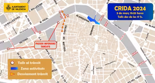 Quant a la Crida, que est previst que se celebre de 19.35 a 21.15 hores a les Torres de Serrans, es tallar al trnsit rodat al marge dret del riu Turia, inclosos els passos inferiors, a partir de les 17 hores. No es descarta que els talls puguen produir-se abans si les circumstncies així ho aconsellen.