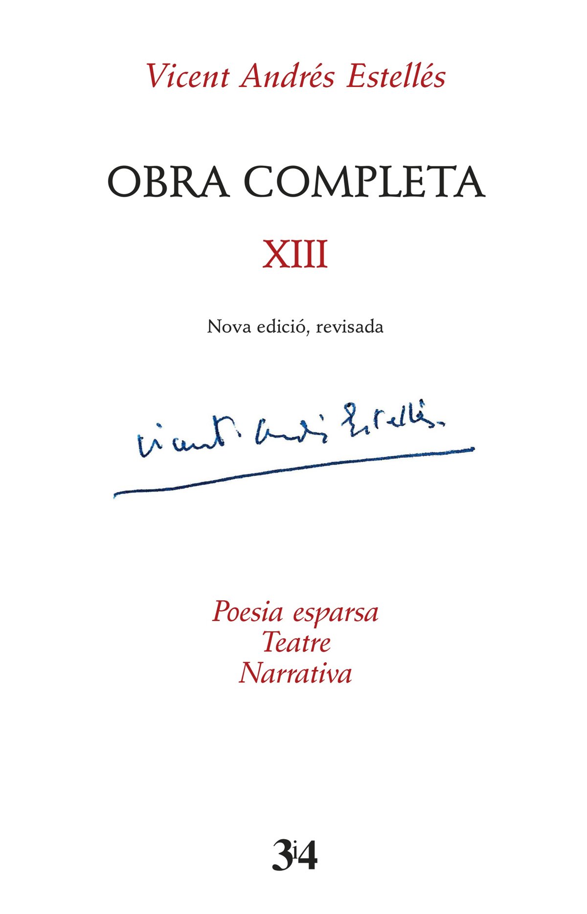 Així, després dels primers 12 volums de la seua 'Obra completa revisada', el volum 13, a cura de Jordi Oviedo, es dedica a reunir la Poesia esparsa, el Teatre i la Narrativa del poeta de Burjassot.