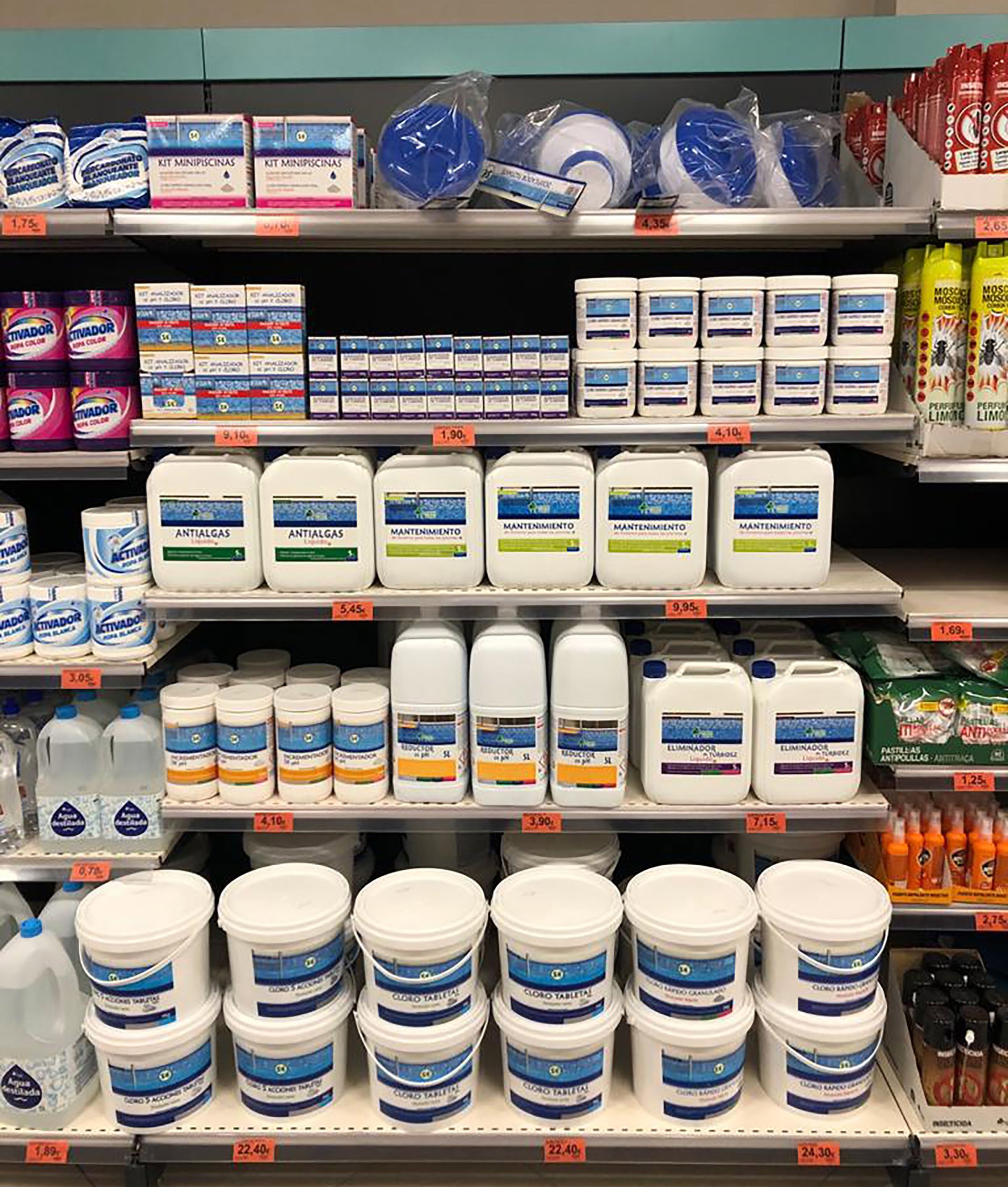 Aquest assortiment, elaborat per Productes QP a Utebo (Saragossa) i per SPB a Xest (Valncia), est compost per productes orientats a solucionar, tant l'arrancada i fi de temporada de piscines, com el manteniment d'aquestes.