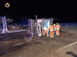 El conductor d'un camió ha mort després de xocar contra un vehicle grua a l'eixida de la A3 a l'altura de Bunyol, bolcar i incendiar-se. Per la seua banda, l'ocupant de la grua va resultar ferit amb policontusions, segons han informat el Consorci de Bombers i del CICU.