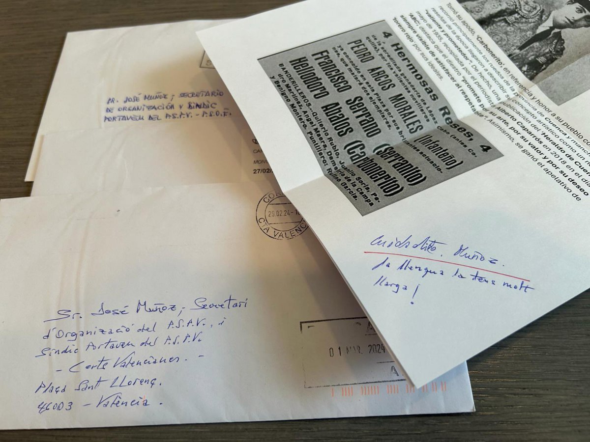 Muñoz ha explicat a Europa Press que ha rebut tres cartes com a part de la seua correspondncia i ha manifestat en xarxes: "Lladren, després nosaltres cavalquem".