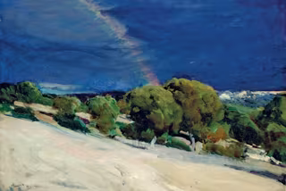 "Immers en aquella cultura, i en contacte amb gran part dels seus protagonistes, Sorolla va donar noves versions als diversos paisatges espanyols, aprofundint en el seu nou sentit i significació, des dels de l'Alhambra deshabitada a aquells dels camps desolats i velles ciutats castellanes, que va descobrir en companyia de Aureliano de Beruete, magnífic pintor de paisatge i il·lustre institucionista", assenyalen.