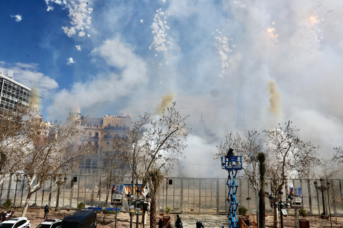 La masclet ha donat comenament, com és tradició, a les 14.00 hores i després que les falleres majors de Valncia, M Estela Arlandis i Marina García, han donat l'ordre: 'Senyor pirotcnic, pot comenar la masclet.