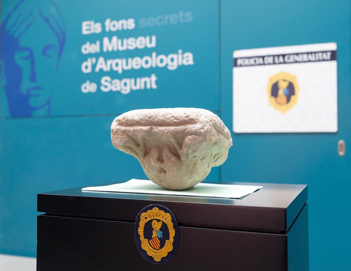 El Grup de Patrimoni Històric de la Policia de la Generalitat ha recuperat, en col·laboració amb personal tècnic de la Direcció General de Patrimoni Cultural, un capitell pertanyent al període tardogòtic que va ser trobat en una zona de vigilància arqueològica de l'entorn del Castell de Sagunt, monument protegit amb la catalogació de Bé d'Interès Cultural.