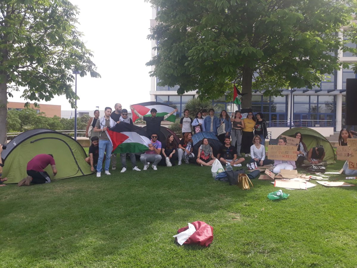 Una quinzena d'estudiants han comenat a acampar hui a l'gora del campus de la Universitat Jaume I de Castelló en solidaritat amb el poble palestí i amb la resta d'acampades que s'estan produint a nivell global.