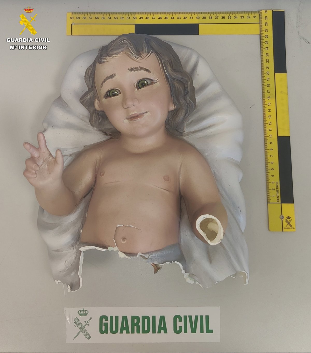 La Guàrdia Civil de València ha recuperat la imatge del Jesuset robada en el Belén instal·lat en una dels carrers principals de la localitat de Cullera i ha identificat als presumptes autors del furt. Es tracta de dos homes de 21 i 24 anys, i dos dones, de 17 i 18 anys, als qui se'ls atribuïx un delicte de danys i furt.