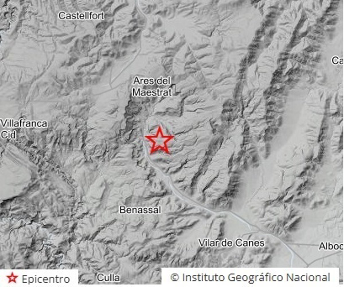 La localitat castellonenca d'Ares del Maestrat ha registrat este dimarts un terratrèmol amb magnitud 2,9, segons informa en la seua pàgina web l'Institut Geogràfic Nacional (IGN).