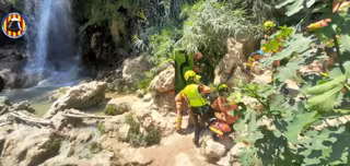 Bombers del Consorci Provincial de Valencia han rescatat a un home d'uns 70 anys després de patir un accident en relliscar uns dos metres en una zona de cascada de la localitat d'Anna.