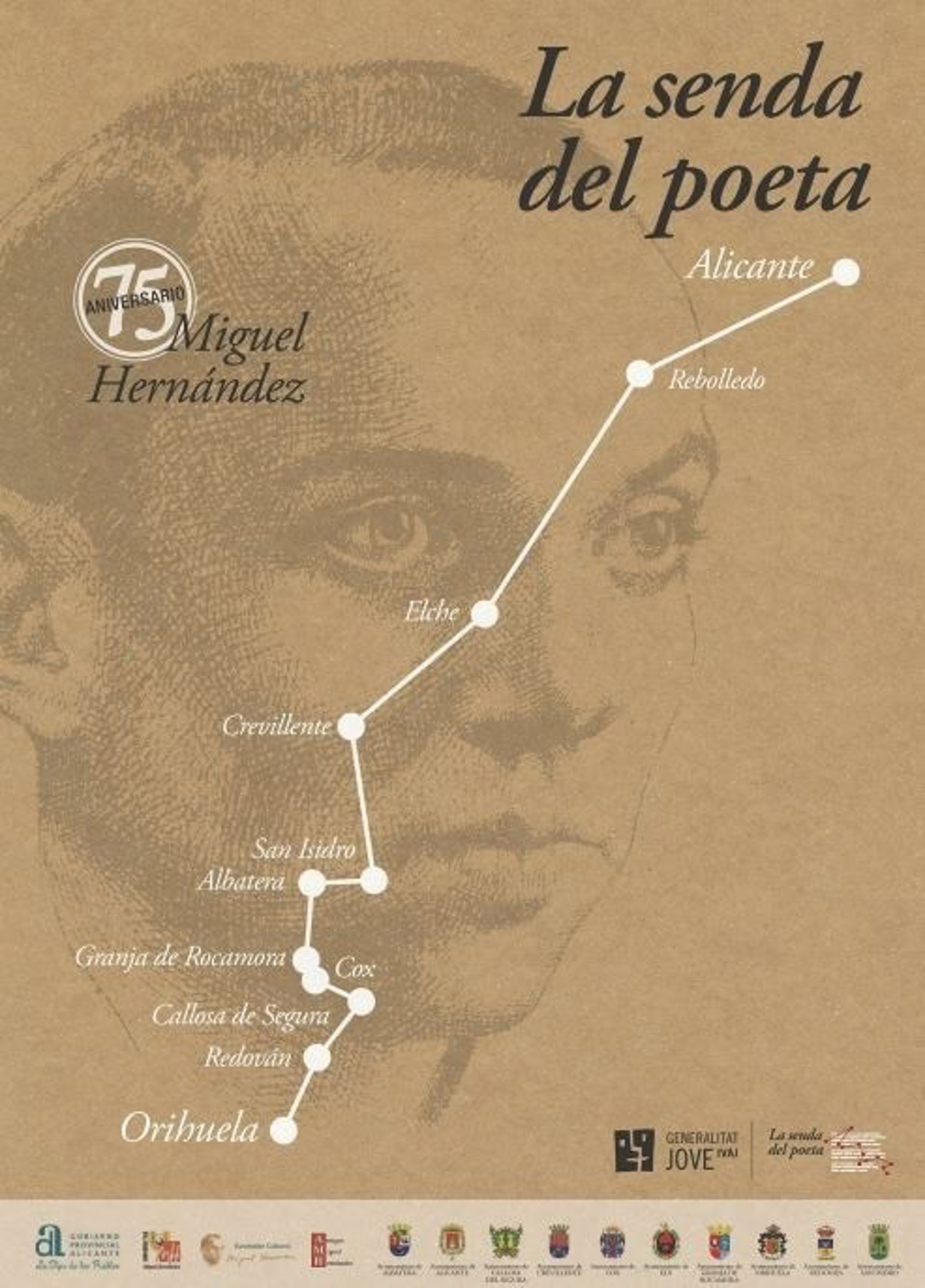 L'itinerari pels llocs més singulars i significatius del poeta compta amb la col·laboració de deu municipis: Oriola, Redovà, Callosa de Segura, Coix, la Granja de Rocamora, Albatera, Sant Isidre, Crevillent, Elx i Alacant, que es recorren per este ordre, així com de la Diputació d'Alacant, l'Universitat Miguel Hernández (UMH), l'Associació d'Amics de Miguel Hernández, la Fundació Cultural Miguel Hernández i la Càtedra Miguel Hernández.