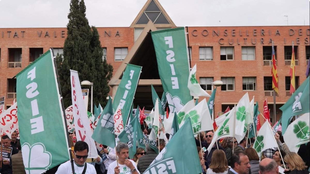 Sindicats de l'ensenyament concertat han dut a terme este dijous una protesta davant de la seu de la Conselleria d'Educació a València per a reclamar un acord que permeta mantenir la jubilació parcial del professorat.