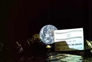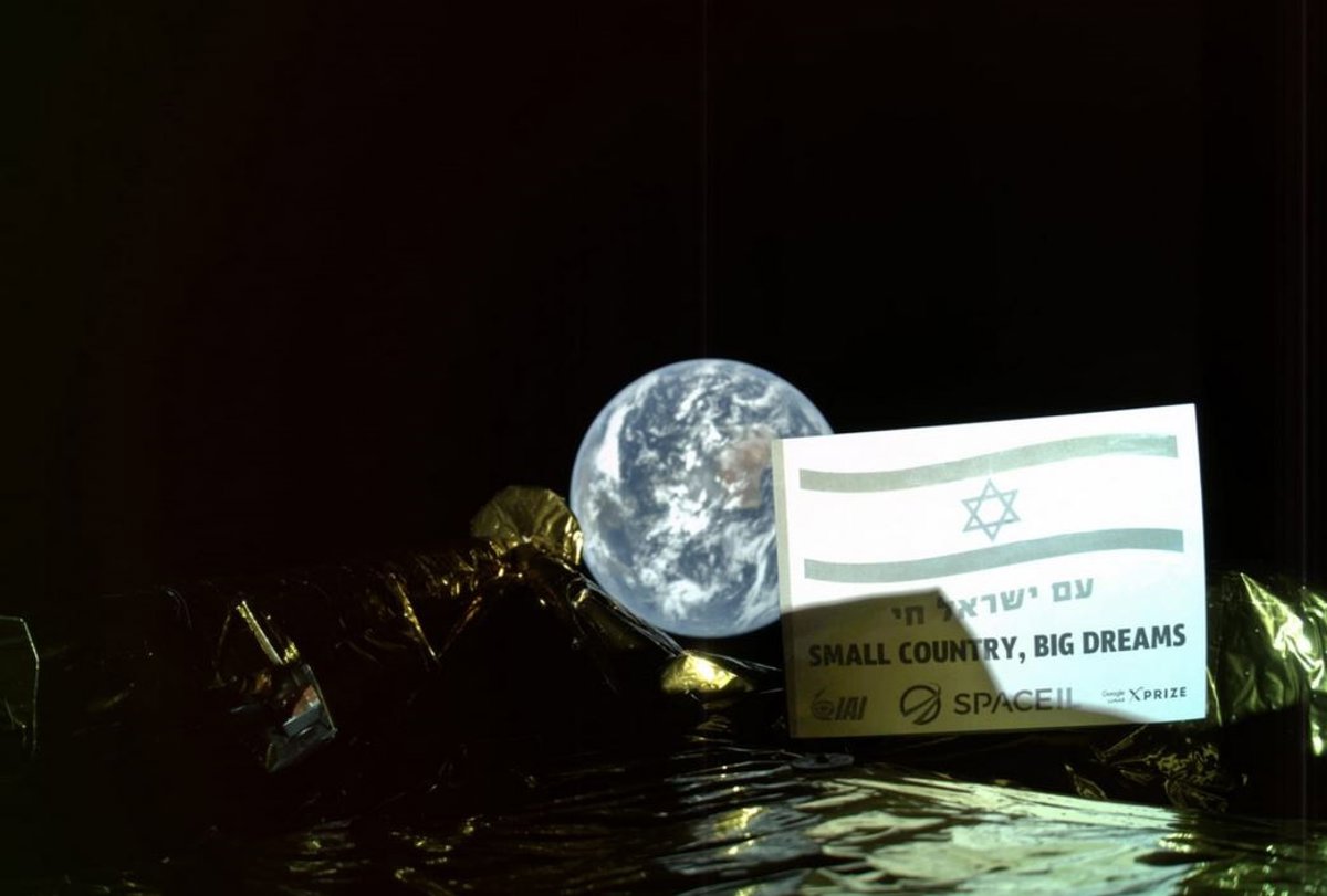 La imatge va ser presa durant un lleu gir de la nau, que deixe veure també la bandera d'Israel i el text 'xicotet país, grans somnis', segons el compte en Twitter de la missió.