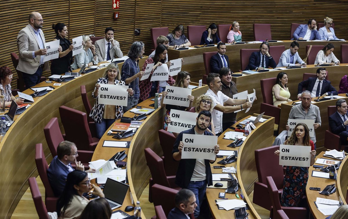 El ple de Les Corts Valencianes ha sigut suspès durant uns deu minuts arran d'una protesta dels diputats de Compromís, que han exhibit cartells amb la pregunta 'On estaves? dirigits cap al president de la Generalitat, Carlos Mazón, en al·lusió a la vesprada del 29 d'octubre, el dia de la dana que va arrasar gran part de la província de València.