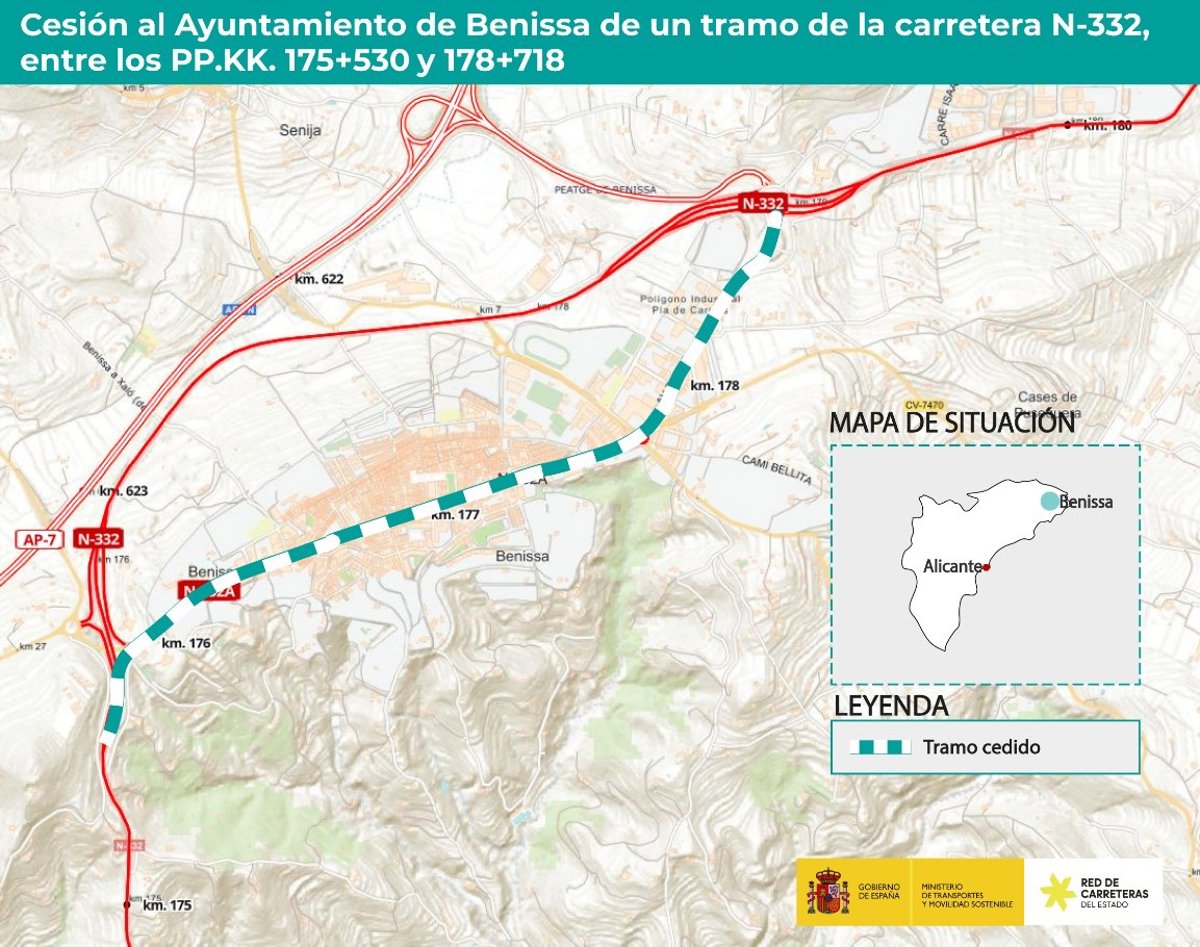 El Ministeri de Transports i Mobilitat Sostenible ha cedit a l'Ajuntament de Benissa la titularitat d'un tram de l'antiga carretera N-332.
