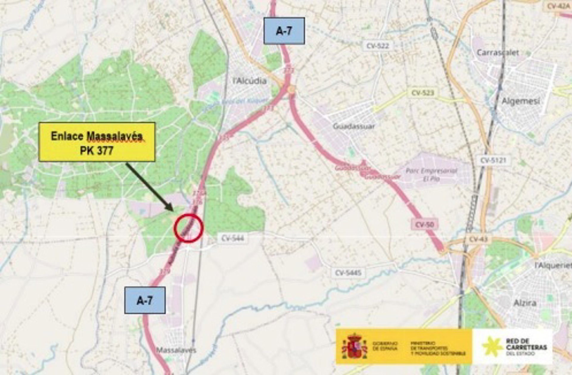 El Ministeri de Transports i Mobilitat Sostenible ha licitat per 681.832,62 euros, IVA inclòs, la redacció del projecte de remodelació de l'enllaç de Massalavés situat en el quilòmetre 377 de la A-7, a la província de Valencia. L'anunci corresponent serà publicat pròximament en el Butlletí Oficial de l'Estat.