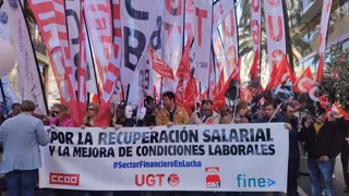 Treballadors d'entitats financeres i la banca s'han manifestat aquest dimecres a Valncia contra "l'immobilisme" de les patronals en les negociacions dels convenis collectius del sector, la plantilla del qual arrossega "una prdua brutal de poder adquisitiu" malgrat "els beneficis rcord" registrats, segons han denunciat.
