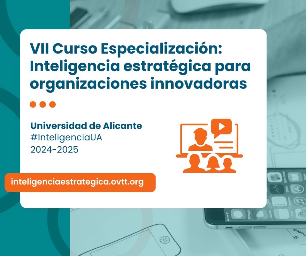 La Universitat dAlacant (UA) presenta la nova edició dIntellignciaUA, el VII Curs dEspecialització Intelligncia Estratgica per a Organitzacions Innovadores per al curs acadmic 2024-2025.