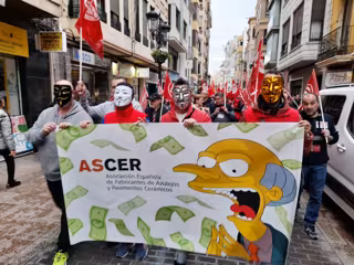 UGT i CCOO han anunciat hui en roda de premsa la convocatria de dos jornades de vaga --els dies 28 de febrer i 1 de mar-- en el sector cermic davant el "bloqueig" de la negociació del conveni collectiu. Posteriorment, han protagonitzat una manifestació de protesta pels principals carrers del centre de Castelló, la qual tenia previst finalitzar enfront de la seu de la patronal del sector, Ascer.