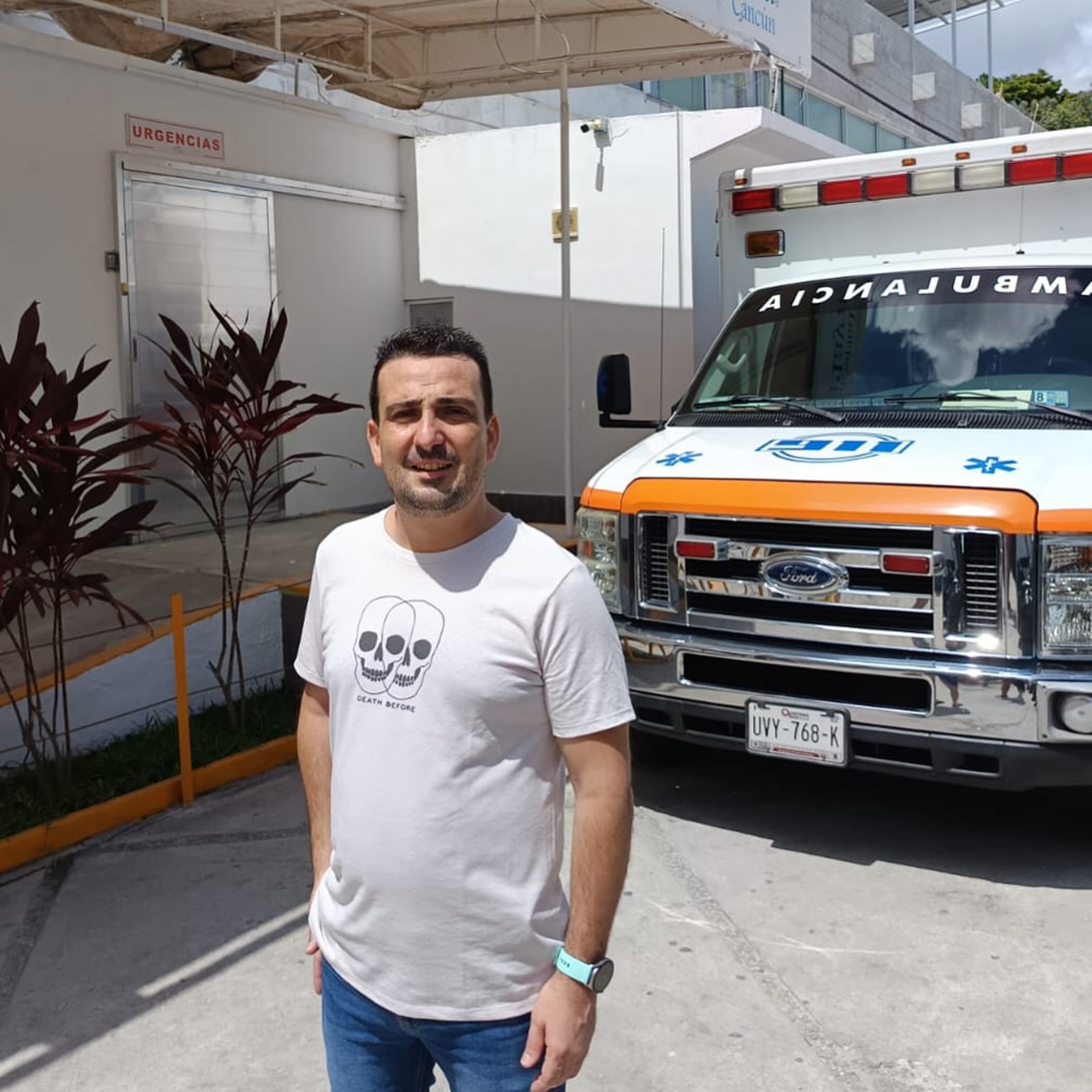 Adrián Fernández es trobava ingressat en un hospital privat de Cancún des que en el seu viatge de lluna de mel va patir un tall de digestió mentre es banyava en la piscina de l'hotel, un ahogamiento i va entrar en parada cardiorrespiratria.